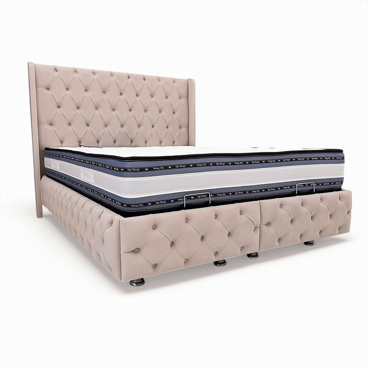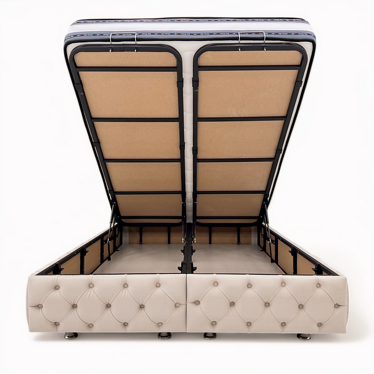 Structure du lit coffre en tissu velours anti acariens et anti bactériens.